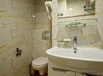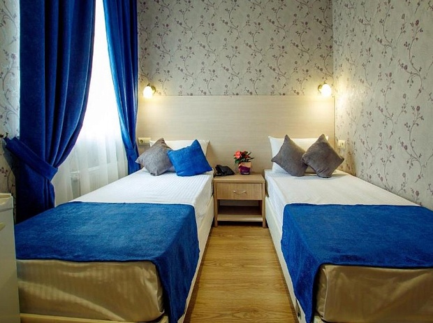 Небольшое здание отеля разместилось на благоустроенной закрытой территории. Гостей ожидают просторные номера категории Стандарт, Студио, Семейный, Люкс и вместительные четырехместные апартаменты. Во всех номерах помимо удобного мебельного гарнитура, установлена сплит-система, есть сейф, телевизор, собственный санузел с ванной или душевой кабиной, в апартаментах и семейных номерах оборудованный кухонный уголок.