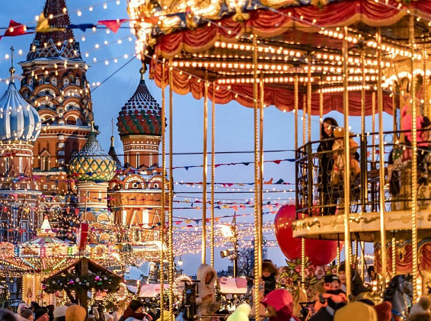 Переезд в центр города. Любимая новогодняя ГУМ-ярмарка в Москве с катком создают настоящую новогоднюю сказку. Карусели для детей и взрослых, волшебные домики-ларцы с сувенирами, центральная елка — все это находится на Красной площади. Здесь можно приобрести национальные сувениры, елочные шары, декорированные валенки, вязаные варежки, оренбургские и павлопосадские платки, изделия из бересты и другие товары народного промысла. Конечно, будут угощения со всех уголков света: пряный горячий глинтвейн, ароматный сбитень, русские блины, жареные колбаски по-баварски, венские вафли, тульские пряники, чай с имбирем и не только.