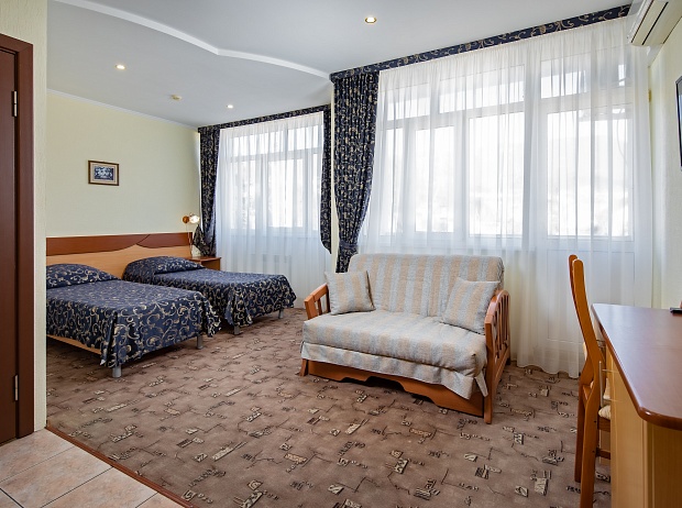 Номер укомплектован полноценным дополнительным спальным местом (раскладной диван размером 130*190).