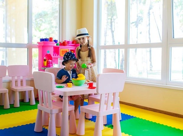 В пансионате "Приморский" есть игровая детская комната, где вашему ребенку будет интересно поиграть. Пользование детской комнатой и работа дежурного воспитателя входит в стоимость путевки. Эта комната сделана не только для наших маленьких гостей, но и для удобства родителям. Если Ваш ребёнок старше 5 лет Вы сможете оставить его под присмотром воспитателя и отдыхать, не беспокоясь о ребенке, если ребёнок младше он сможет посещать детскую комнату в Вашем присутствии.