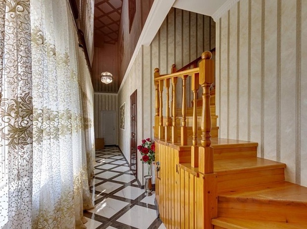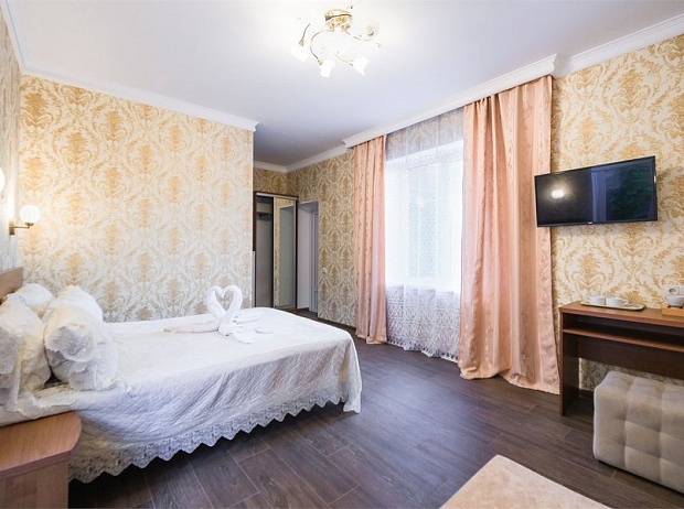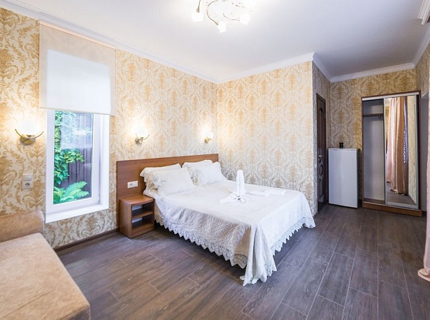 Трехэтажный гостевой дом занимает небольшую закрытую территорию с внутренним двориком. В распоряжении гостей уютные номера, рассчитанные на 2–4 гостей. В комнатах – классические интерьеры, везде предусмотрен санузел с душем, есть кондиционер, телевизор, электрочайник.