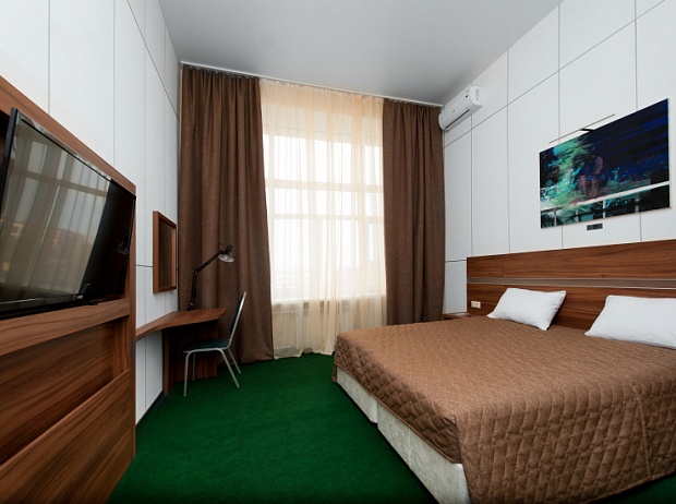 Отель уникален своим эксклюзивным дизайном интерьера, в котором представлены оригиналы полотен российских и зарубежных художников, что создает ощущения пребывания в галерее современного искусства.