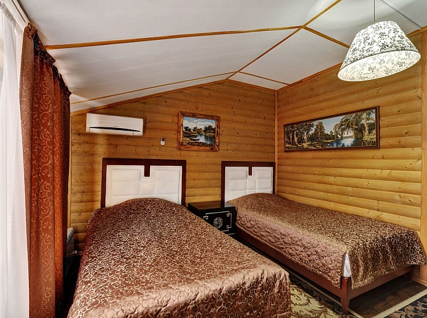 Номера оборудованы всем необходимым для полноценного отдыха гостей: удобной кроватью, телевизором, сплит-системой. В ванной комнате предоставляются - косметические принадлежности, тапочки и халаты. Хорошая планировка комнат, тепло бревенчатых стен, запах настоящего дерева создают ощущение неповторимого загородного уюта, помогают снять напряжение, отстраниться от суеты большого и шумного города. На втором этаже находится ресторан, в котором гости отеля могут отведать блюда русской, европейской и кавказской кухни.