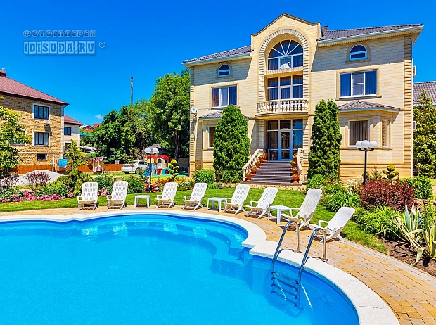 Гостевой дом состоит из трех корпусов, на территории каждого корпуса имеется бассейн.