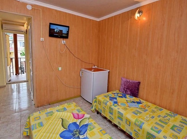 2—3-4-х местные номера «стандарт». Оснащение: двуспальные и односпальные кровати, тумбочки, шкаф, кондиционер, телевизор, холодильник. Для каждого номера предусмотрен индивидуальный столик со стульями для отдыха на общем балконе, холодильник