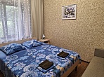 Двухкомнатный номер рассчитан до 4х человек . В одной комнате двухспальная кровать, диванчик, тумбочки, журнальный столик, чайник и телевизор. В другой комнате две полутороспальные кровати, тумбочки, телевизор, сплитсистема.