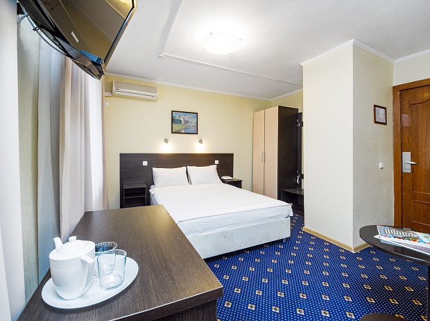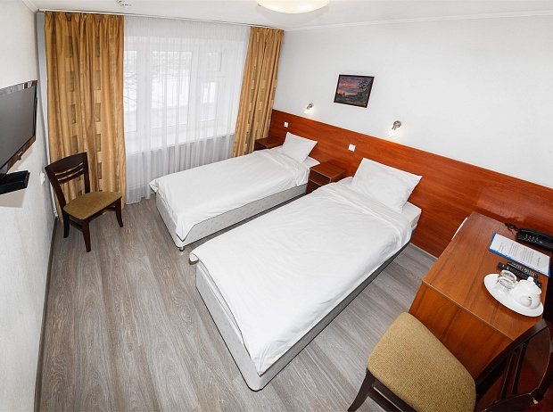 16-ти этажное здание отеля, оборудованное лифтами, возвышается в тихом и зеленом районе города. Гостей ожидают номера категории Эконом, Стандарт, Бизнес и Студия, рассчитанные на единовременное размещение до 450 человек. Классически оформленные номера оснащены санузлом с душем или ванной, необходимой бытовой техникой и предметами мебельного гарнитура.