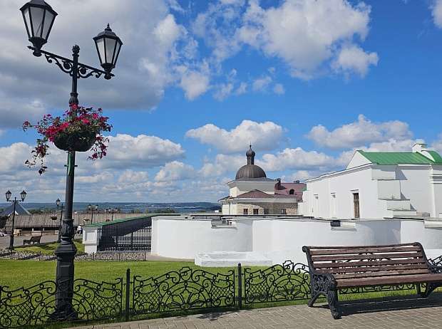 -смотровую площадку Рождественской площади, откуда открывается вид на живописный Свияжский Залив и храмовые комплексы монастыря Макарьевской пустыни и Церковь Константина и Елены