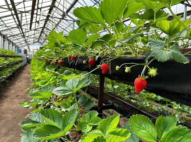 Клубника здесь выращивается 365 дней в году, имеются теплицы и 3Га полей открытого грунта.