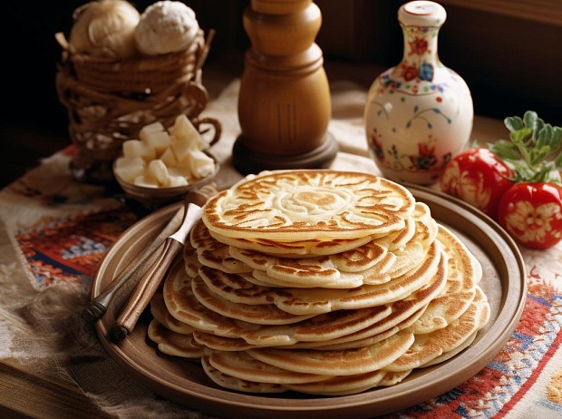 12-00 Отправляемся в Русскую избу, где нас встретит радушная хозяйка блинами и рюмочкой Шуйской настойки.