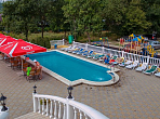 На первом этаже корпуса для гостей оборудована кухня, работает кафе с двумя залами. В распоряжении гостей открытый уличный бассейн, зона отдыха с шезлонгами и теневой беседкой. Также среди услуг — парковка возле корпуса, настольный теннис, сеть wi-fi и игровая площадка для детей.