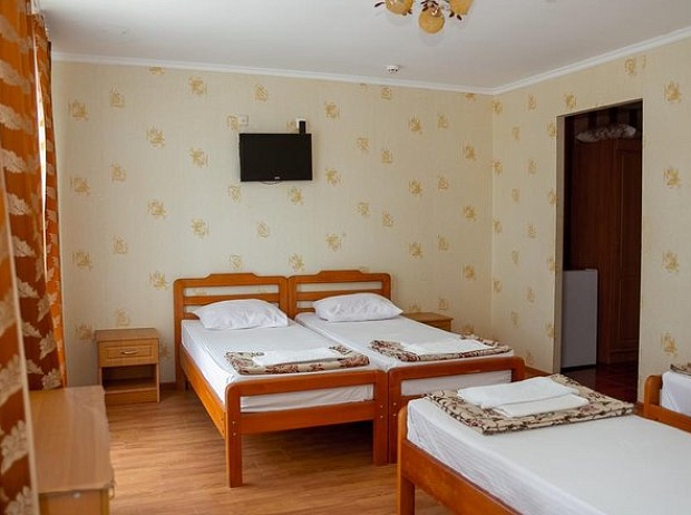 В номере: 3 односпальные кровати, прикроватные тумбочки, шкаф, кондиционер, телевизор, Wi-Fi, холодильник, санузел с душем, балкон с мебелью.