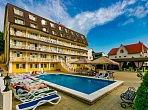 Современный шестиэтажный корпус отеля с широкими балконами занимает благоустроенную озелененную территорию в самом живописном месте поселка. В распоряжении гостей стандартные однокомнатные номера с удобствами. Везде предусмотрен индивидуальный санузел, кондиционер, телевизор.