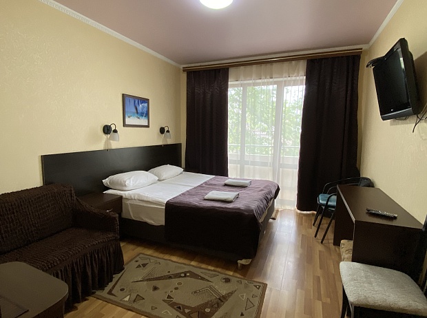 В отеле «Патио» к вашим услугам 2-х, 3-х и 4-х местные однокомнатные номера стандарт, комфорт и два двухкомнатных номера класса люкс. Все номера оборудованы телевизором, холодильником, сплит-системой, сейфом, феном. В зонаx общего доступа на ресепшене и во внутреннем дворике имеется бесплатный доступ в интернет (Wi-Fi)