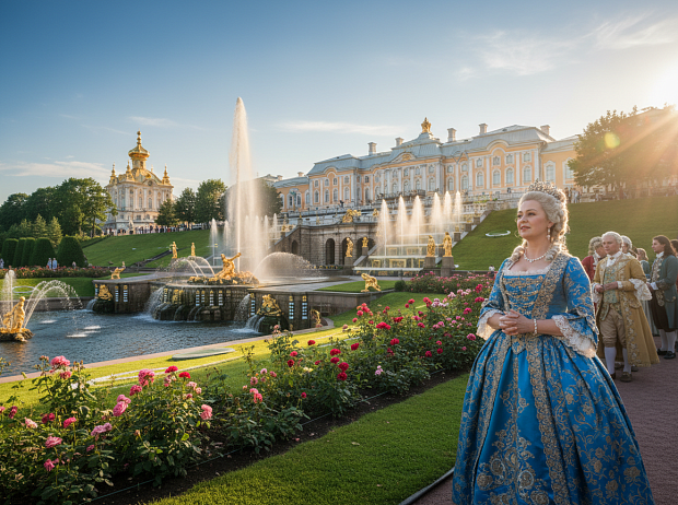 Bce этo дeйcтвo будет пpoиcxoдить нa плoщaди вoзлe Бoльшoгo Kacкaдa, нa фoнe вeличecтвeннoгo двopцa.