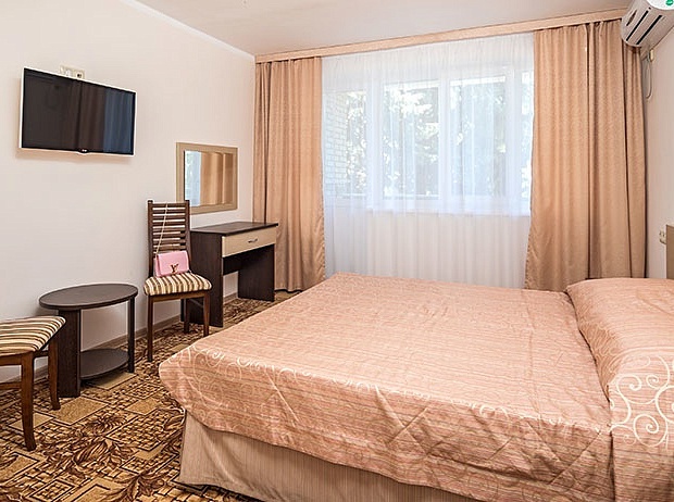 «Приморский» предлагает Гостям комфортные номера с балконом, оборудованные спальным гарнитуром, журнальным столиком, стульями, телевизором, холодильником, кондиционером и другими необходимыми удобствами.