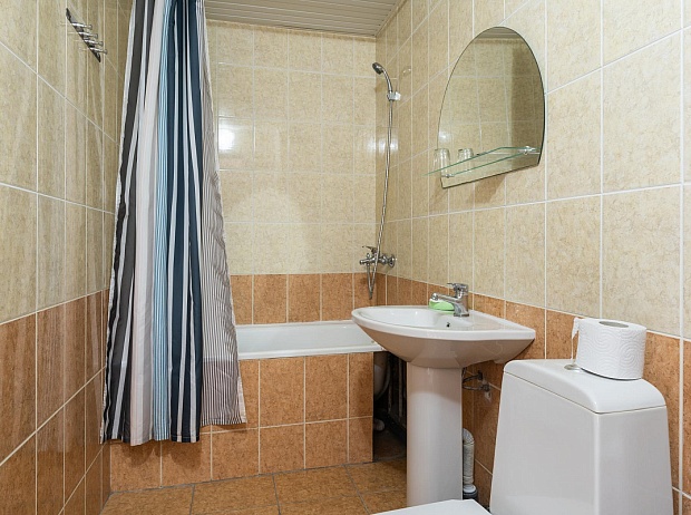 В ванной комнате – фен, комплект полотенец, шампунь и мыло.