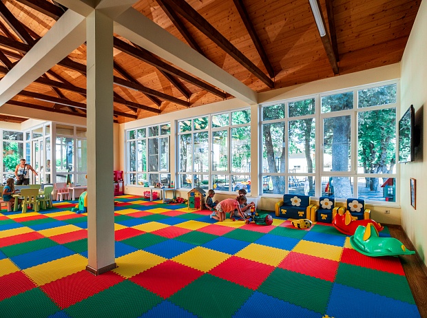 В пансионате "Приморский" есть игровая детская комната, где вашему ребенку будет интересно поиграть. Пользование детской комнатой и работа дежурного воспитателя входит в стоимость путевки. Эта комната сделана не только для наших маленьких гостей, но и для удобства родителям. Если Ваш ребёнок старше 5 лет Вы сможете оставить его под присмотром воспитателя и отдыхать, не беспокоясь о ребенке, если ребёнок младше он сможет посещать детскую комнату в Вашем присутствии.