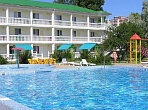 Два бассейна (детский диаметром 6 м с водопадом и взрослый - 12 х 11 м с гидромассажем) с подогревом, оснащены системой автоматической фильтрации воды. Рядом с бассейнами располагается зона отдыха с шезлонгами, тентами от солнца и летнее кафе. При входе в зону отдыха расположен красивый, действующий фонтан. Так же есть детская площадка, детская игровая комната, тренажерная площадка.