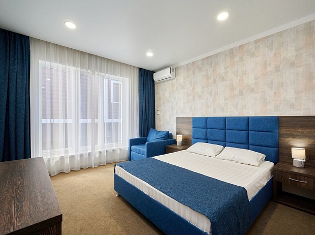 Отель порадует стильным интерьером, заботливым персоналом и готовностью сделать отдых гостей незабываемым. Номера оборудованы всем необходимым: собственным санузлом с душем или ванной, телевизором, холодильником, кондиционером, ортопедические матрасы на кроватях и чистый морской бриз обеспечат глубокий сон. Приветливые горничные возьмут на себя бытовые мелочи.