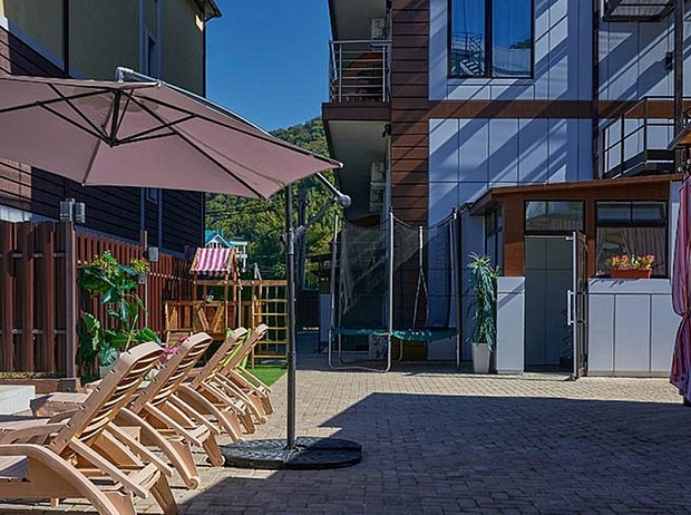 На территории предусмотрены открытый бассейн с шезлонгами, лаунж-зона, детская площадка, бар и парковка. Мелкогалечный пляж располагается в 200 метрах от отеля. На пляже можно взять на прокат гироскутеры, сапы, вэйкборды и многое другое.