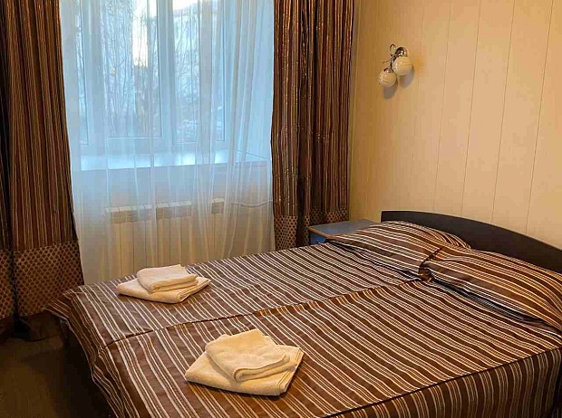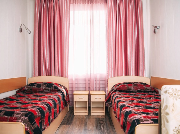 В номерах стандарт имеются прикроватные тумбочки, а также собственный санузел. В гостинице даже эконом вариант имеет полную меблировку.
